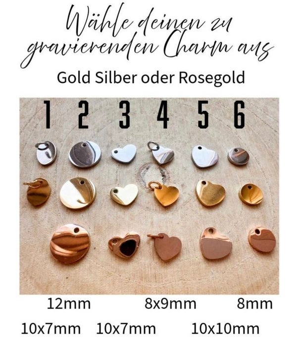• Gravurplättchen: rund, oval oder Herzform – personalisierbar mit Name, Datum, Initialen oder Symbol