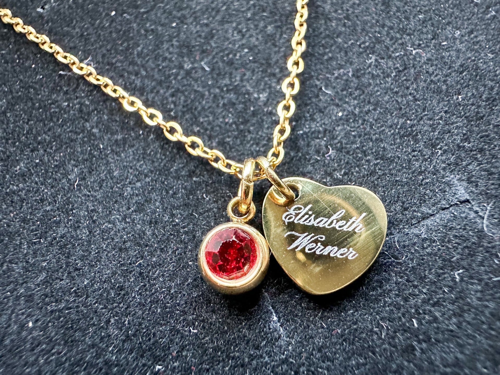Diese Halskette ist mehr als Schmuck – sie ist deine ganz persönliche Erinnerung. Eine Kombination aus edlen Materialien, liebevoller Gravur und dem kristallinen Glanz deines Geburtssteins macht sie zu einem Schmuckstück, das Geschichten erzählt – genau deine Geschichte.